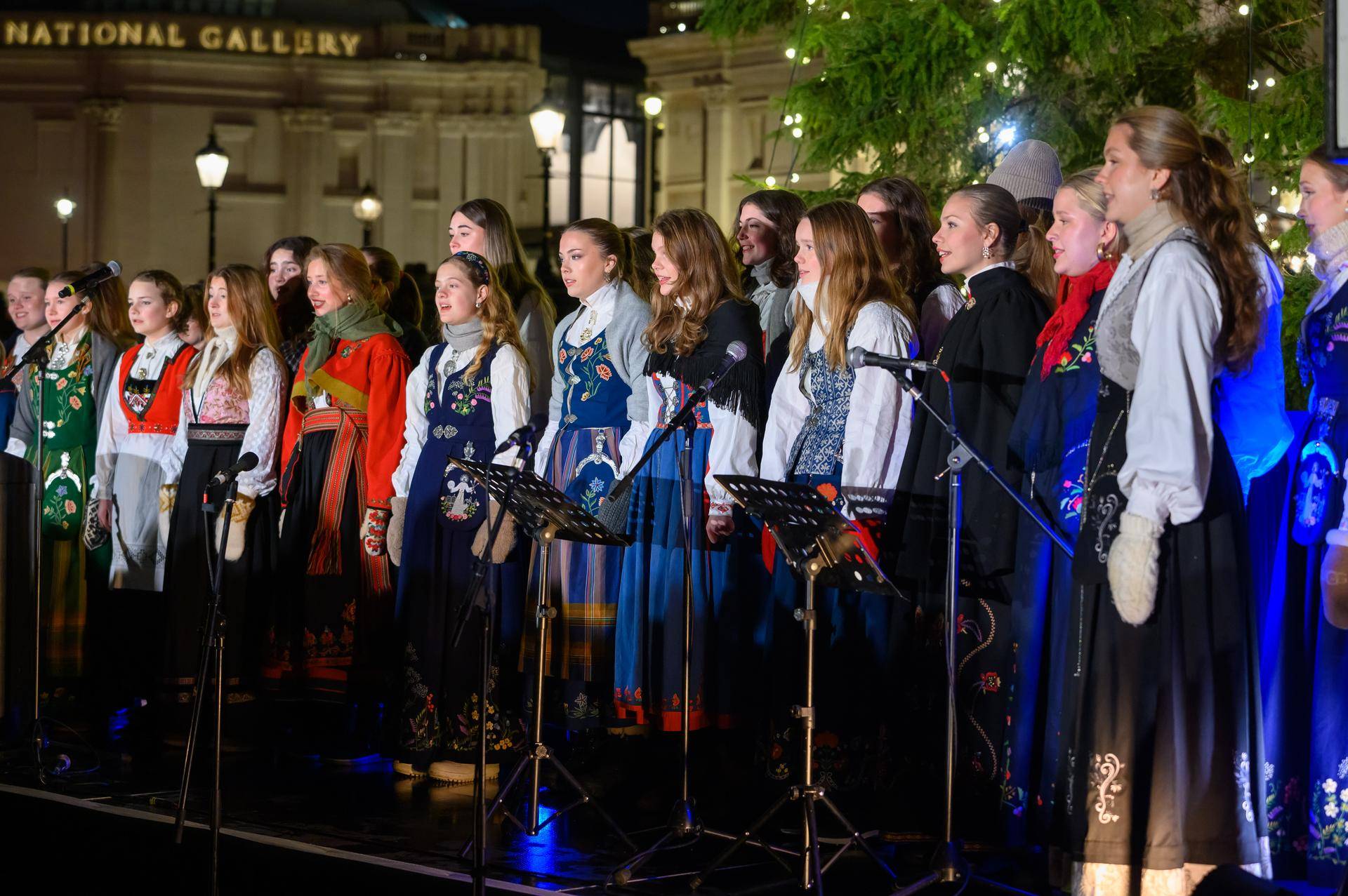 Above: The Norwegian Girls Choir (Det Norske Jentekor) singing at the lighting up of the Trafalgar Tree this week. Photo: Leo Cinicolo Photography. |