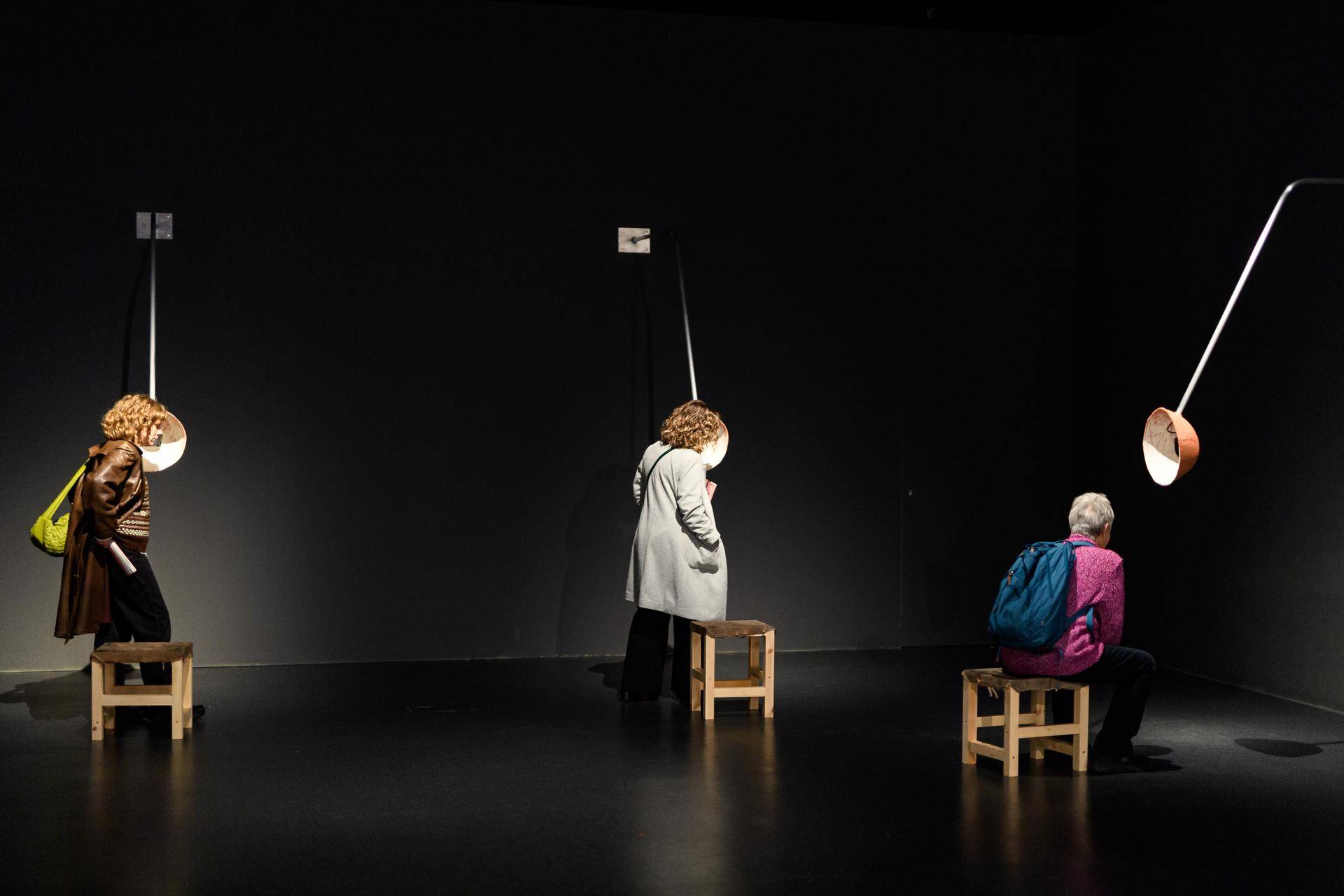 At National Museum Cardiff, Haloba is showing a new interactive sculpture with sound, the viewer invited to listen to whispered fragments of text, music and ambient recordings that emanate from ceramic structures and deal with trauma and healing. Artes Mundi 11 Launch, National Museum Cardiff, 23rd October 2025. Photo: Polly Thomas. |