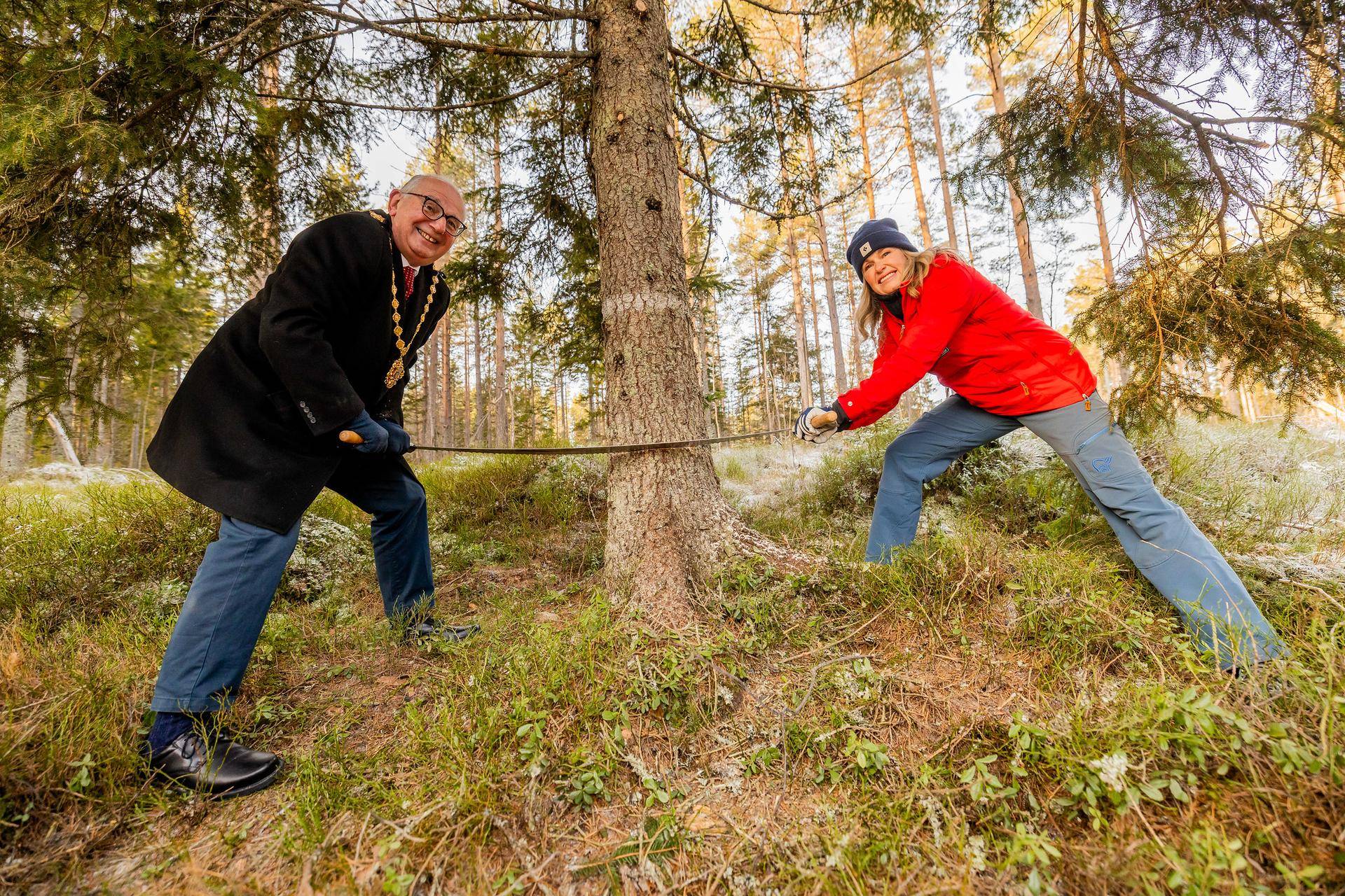 Yesterday in the forest north of Oslo, Mayor of Oslo Anne Lindboe and Lord Mayor of Westminster Paul Dimoldenberg joined forces for the felling ceremony of this year's Trafalgar Tree.