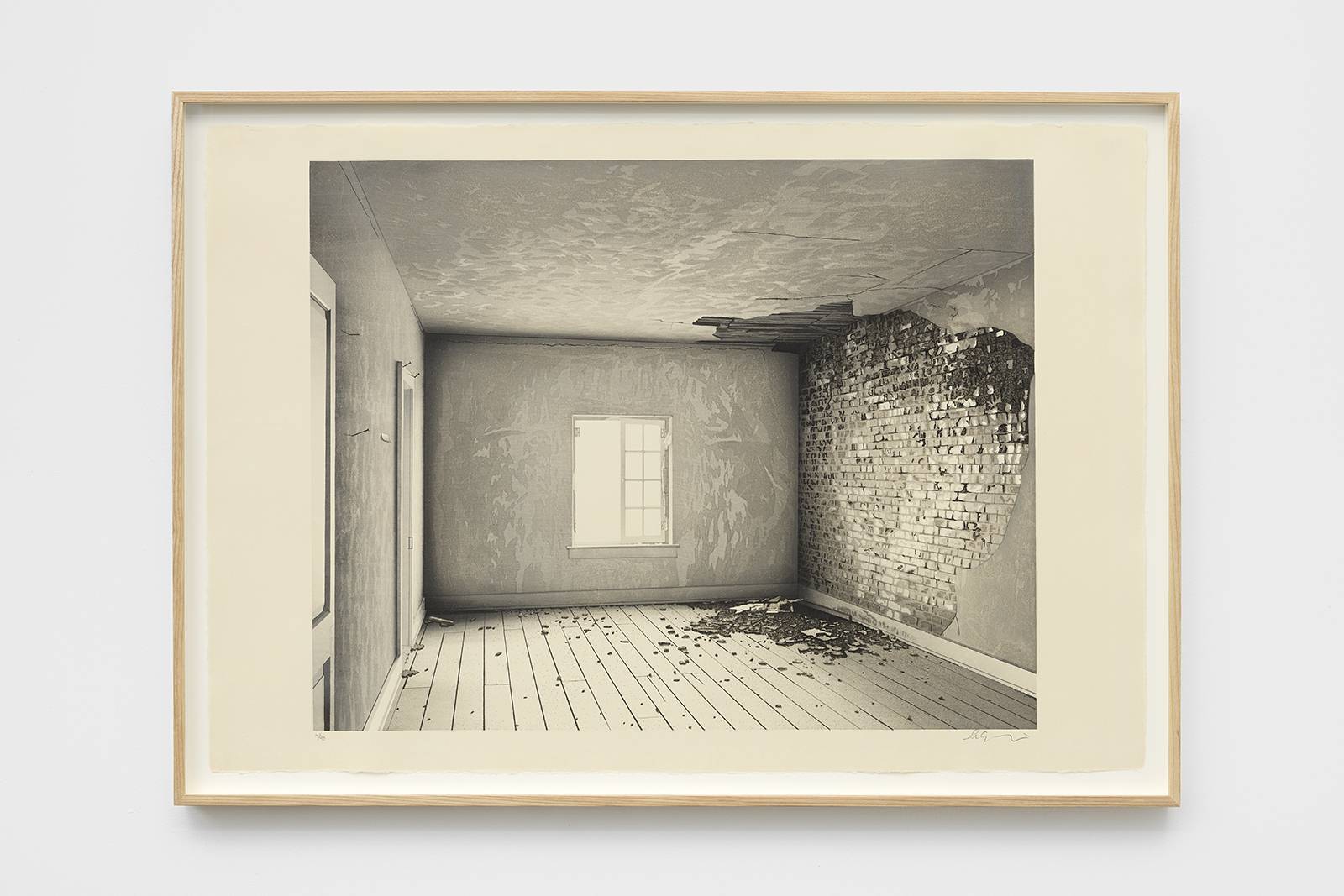 Gardar Eide Einarsson, Incendiary Test Area (Interior View of Second Floor Room), 2024. Japanese woodcut on hand made washi paper. © Gardar Eide Einarsson, courtesy Maureen Paley, London |