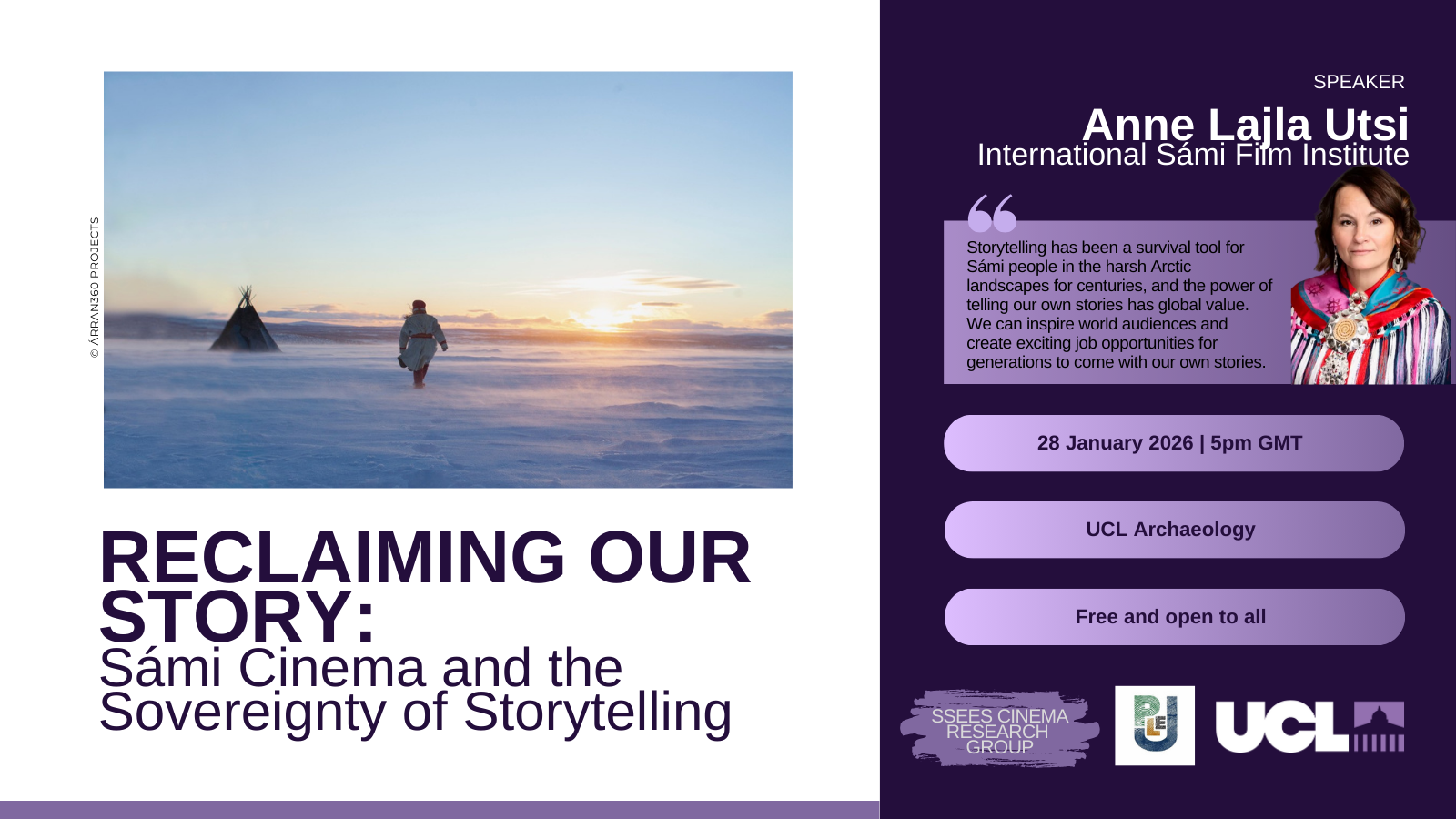 London, UCL Archaeology G6 Lecture Theatre, 31-34 Gordon Square, 28 January: Sámi cinema has emerged as one of the most vital cultural arenas for Indigenous self-representation in the Nordic region. For decades, Sámi people were portrayed through external, often stereotypical lenses that shaped public understanding far beyond Sápmi. Today, a new generation of Sámi filmmakers is transforming this landscape by reclaiming narrative authority and telling stories rooted in their own culture, where Sámi worldviews, languages, and lived experiences shape the storytelling.