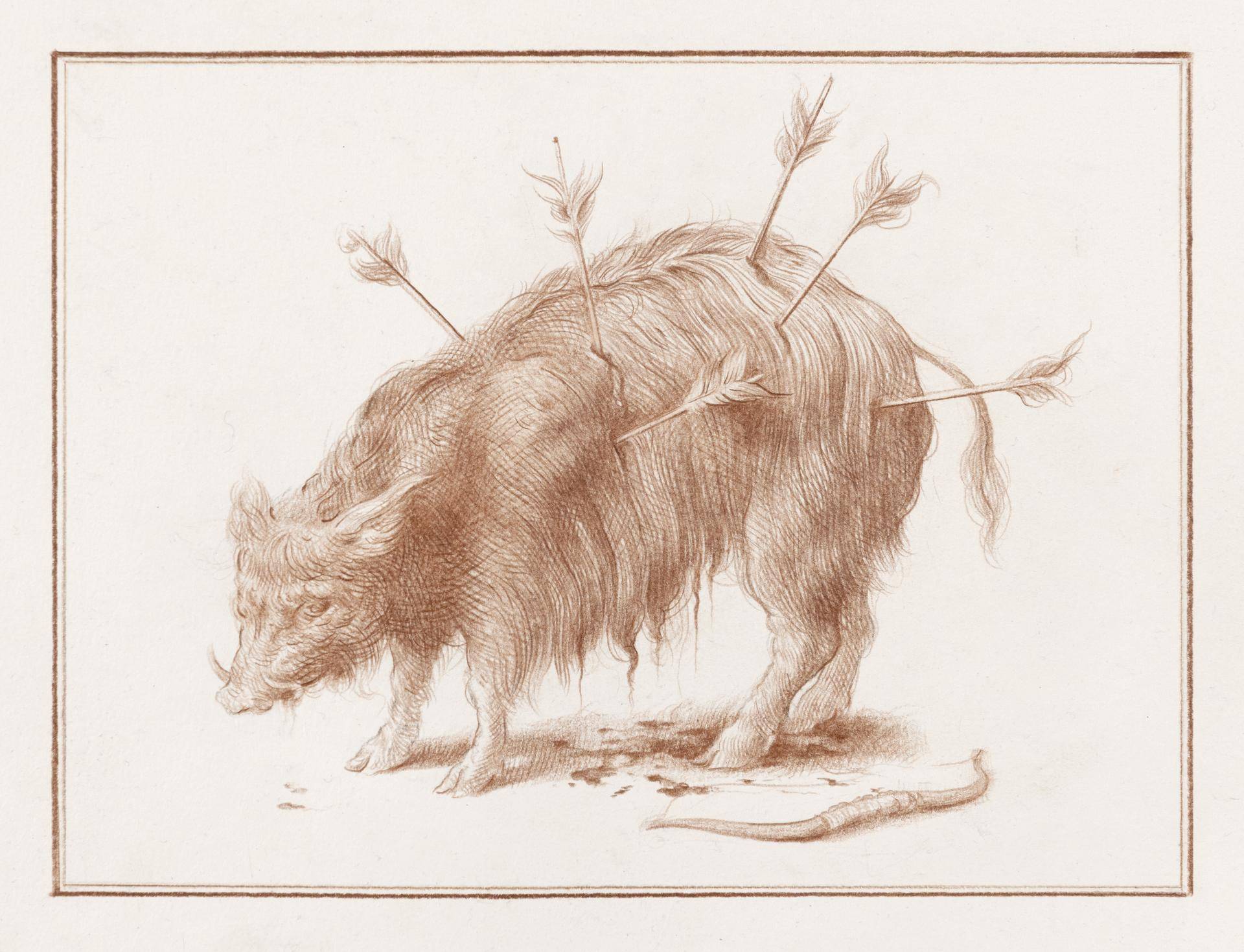 Sverre Malling, Impaled Boar, 2025, charcoal and oil-based pencil on paper. Photo © Thomas Widerberg. Courtesy Sverre Malling and Kristin Hjellegjerde Gallery. |